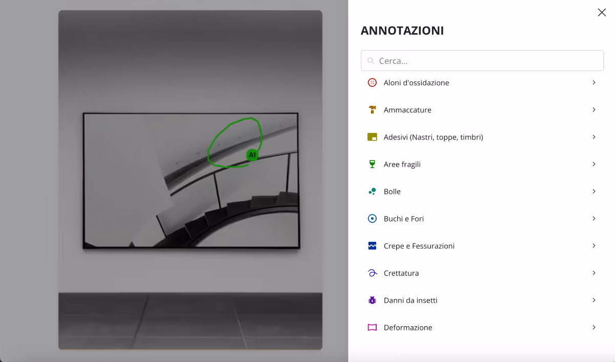 Le annotazioni consentono di evidenziare in maniera precisa eventuali danni o particolari caratteristiche.